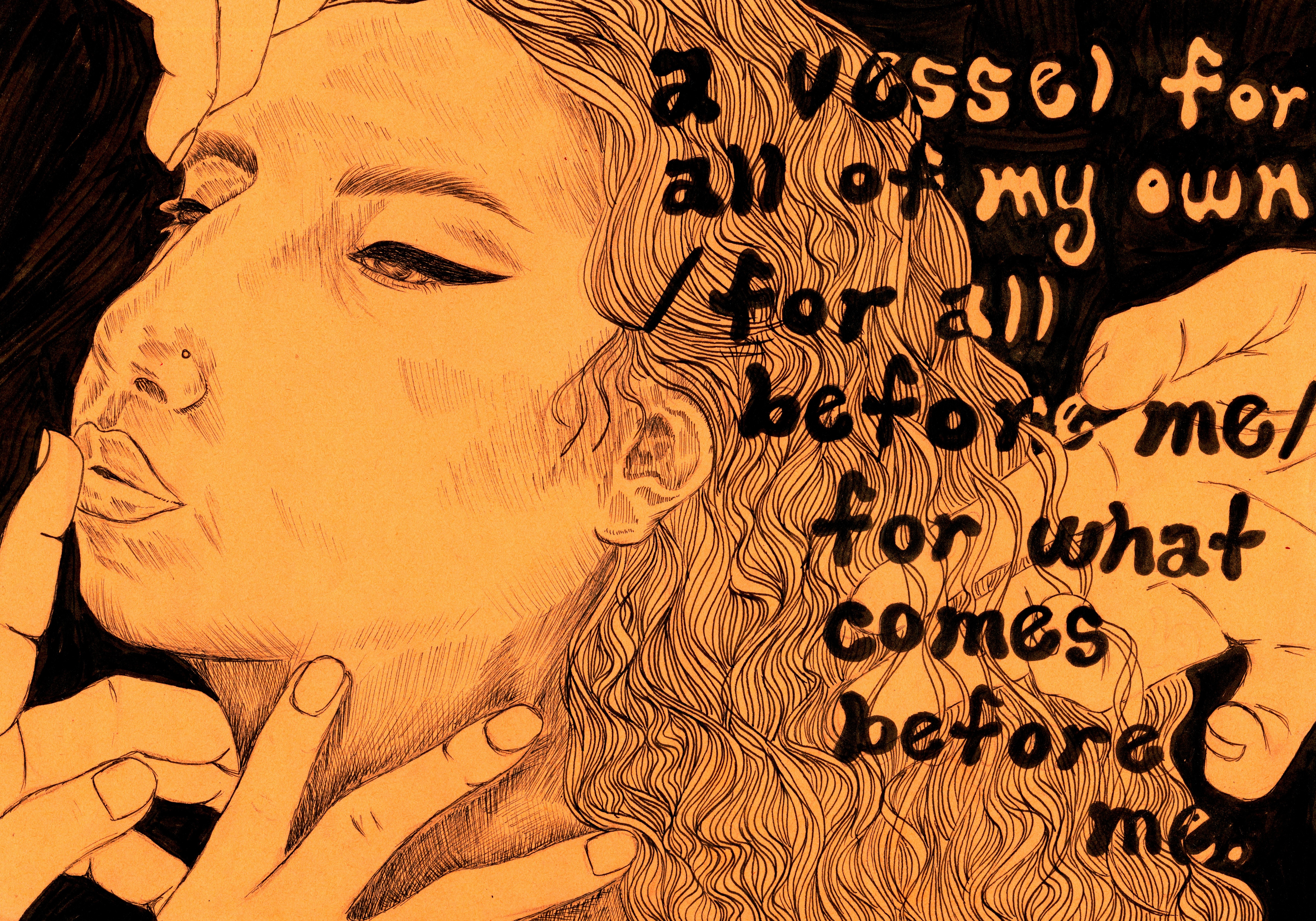 from left to right reads,“a vessel for all of my own / for all before me / for what comes before me.”